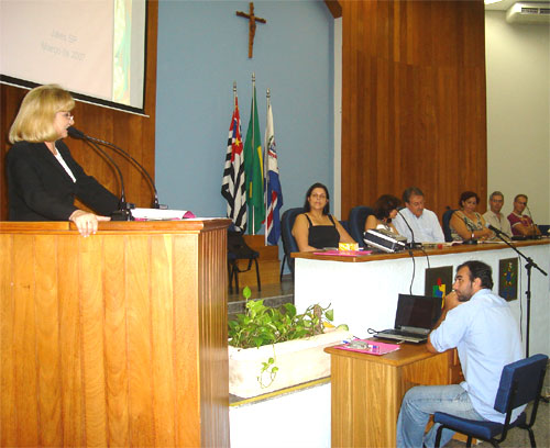Após o ato cerimonial, uma palestra sobre o papel da mulher na sociedade, foi proferida pela professora Liria Betiol ? coordenadora do Curso de Serviço Social na Unijales e na seqüência foram escolhidas e aprovadas as mulheres que representarão Jales na Conferência Regional de Políticas para Mulheres, no dia 28 de março, na cidade de São José do Rio Preto.