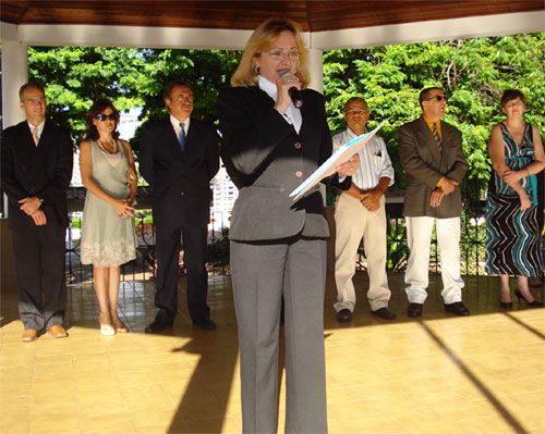 Eu ? uma mulher ? a 1ª mulher a presidir a câmara de Jales ? graças aos votos dos meus colegas vereadores. E isso me reverte ao passado. Eu que brinquei muito nesta praça, na época era a única ? onde havia uma singela fonte luminosa com uma ?pontezinha? que nos permitia correr de um lado a outro.