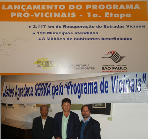 Na oportunidade, foi assinada a autorização para a implantação da primeira etapa do Pró-Vicinais e que, em 60 dias, espera-se que a segunda seja iniciada. Segundo os vereadores, o programa foi criado pela Secretaria Estadual dos Transportes com o objetivo de permitir o escoamento da produção das cidades paulistas, contribuindo dessa forma para o desenvolvimento econômico do Estado. Ainda, segundo eles, o programa não é um mero tapa-buracos, mas sim, pretende-se refazer essas estradas e torná-las novas.
