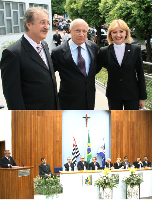 A presidenta da Câmara Municipal, Aracy (Tatinha), fez a saudação ao homenageado em nome do Poder Legislativo de Jales e entregou o ?Título de Cidadão Jalesense?, ao presidente do Tribunal, o Desembargador Celso Luiz Limongi.