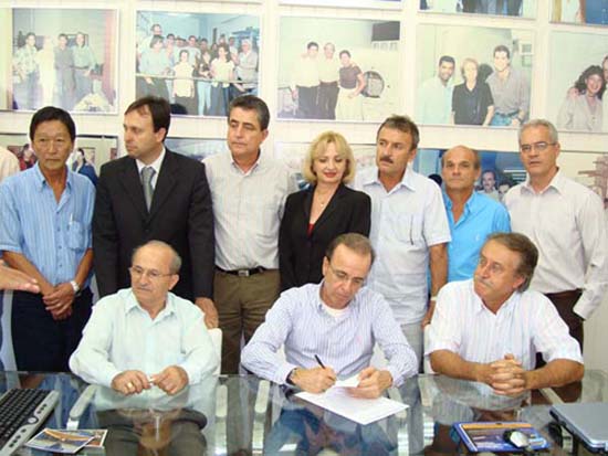 Nessa segunda-feira, dia 02, o presidente da Câmara Municipal, Osmar Pereira de Resende e os vereadores Luís Especiato e Aracy (Tatinha), juntamente com o prefeito Humberto Parini e representantes da comunidade jalesense estiveram na cidade de Barretos para assinatura do Contrato de Comodato por 99 anos da estrutura do prédio da Unimed para a fundação PIO XII, que vai efetivar a instalação do Hospital do Câncer em Jales para dar início às atividades de atendimento aos pacientes.