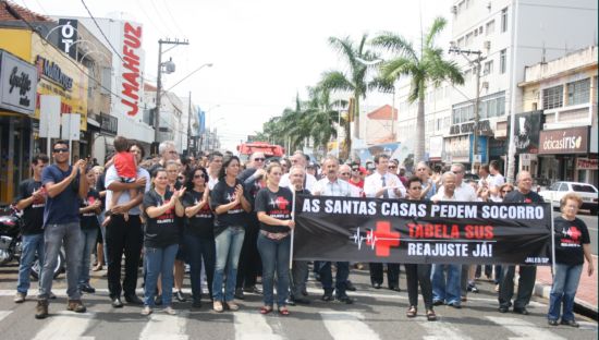 Vereadores da Câmara Municipal de Jales participaram na manhã da última quarta-feira (10), da passeata organizada pela Santa Casa de Misericórdia de Jales, intitulada "Tabela SUS, Reajuste Já!", que objetiva sensibilizar os Governos Federal e Estadual para adequar os pagamentos de atendimentos realizados pelo SUS (Sistema Único de Saúde) pelas Santas Casas e Hospitais Filantrópicos. Os vereadores Luiz Henrique Viotto, o Macetão, presidente da Casa, e Luís Especiato, participaram do evento.