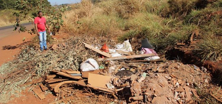 Ao lado da rodovia, o vereador constatou a presença de entulhos de obras, restos de podas de árvores e de outros materiais que foram jogados em local proibido.