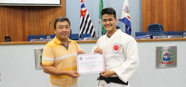 Na tarde de hoje (1), o vereador Fábio Kazuto (PSB) entregou uma moção de aplausos ao judoca Leonardo Sakashita, pela conquista da medalha de ouro nos 35º Jogos Abertos da Juventude do Estado de São Paulo.