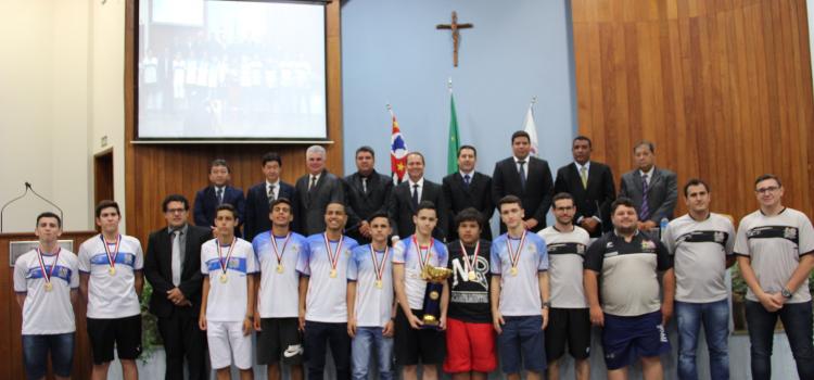A Câmara Municipal homenageou, através de Moção de Aplausos, a equipe de futsal da Apafuj – categoria até 16 anos, pela conquista do título de campeão estadual da “Copa Piratininga”, promovida pela Federação Paulista de Futsal, no último dia 13, em Osasco-SP.