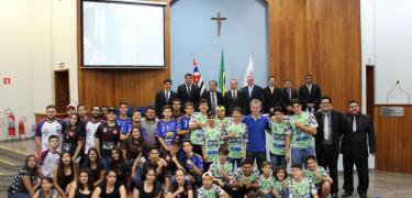 Câmara homenageia equipe de handebol da Escola Dom Artur por título28 de setembro de 2018Em Sessão Ordinária (24), o vereador Tiago Abra (PP) homenageou os atletas e treinadores da equipe de handebol masculino, da Escola Estadual “Dom Artur Horsthuis”, pela conquista do título de Campeão Estadual Escolar.A...